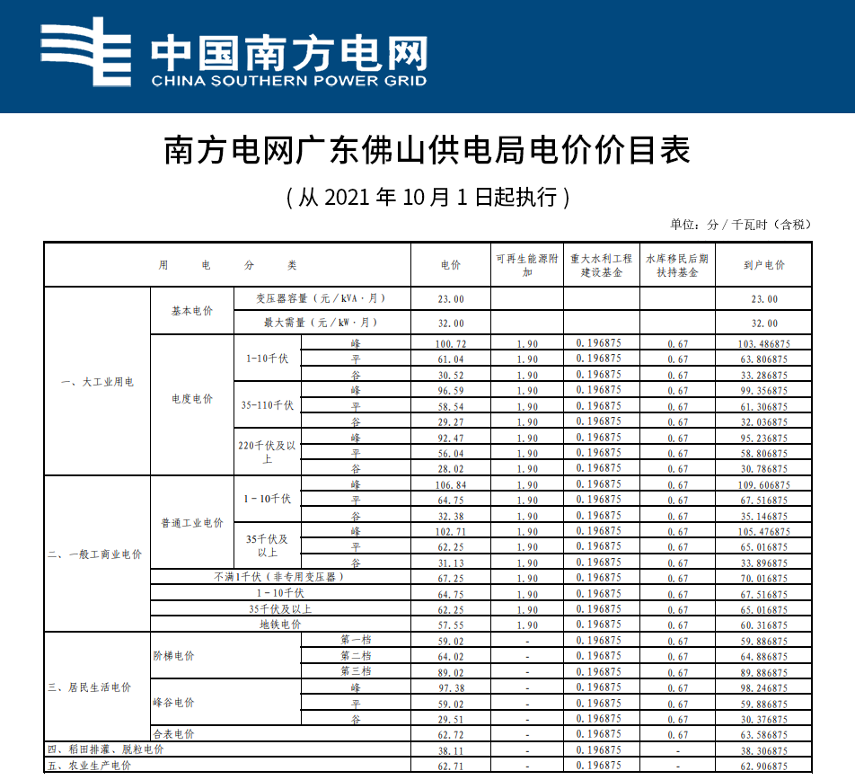 2021年10月調(diào)整后價目表(7月、8月、9月) | |||||
